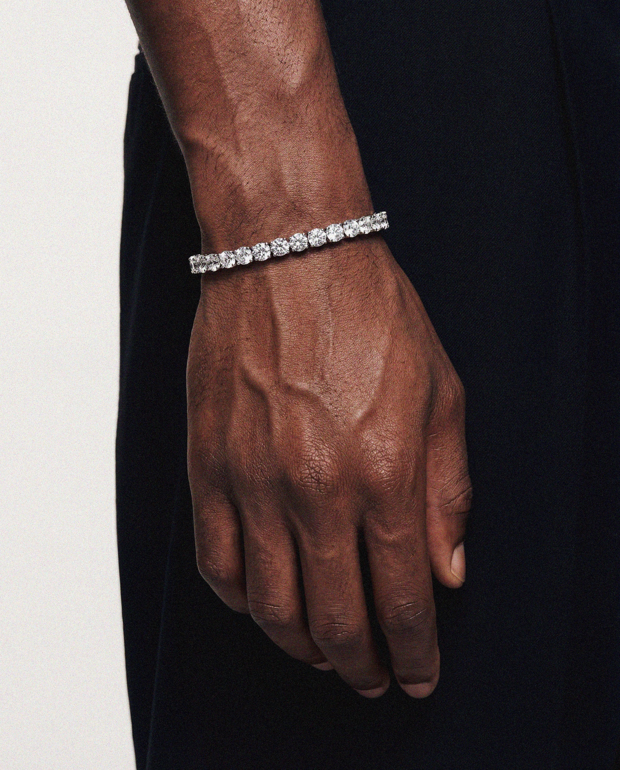 Add refined brilliance to your wrist with the Nocta Vince 4-Prong Round-Cut Tennis Bracelet, available in 3MM, 4MM, and 5MM widths. Each bracelet features a flawless row of high-sparkle CZ stones, set securely in a classic 4-prong mount for maximum shine and a clean, premium finish.