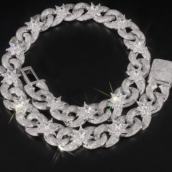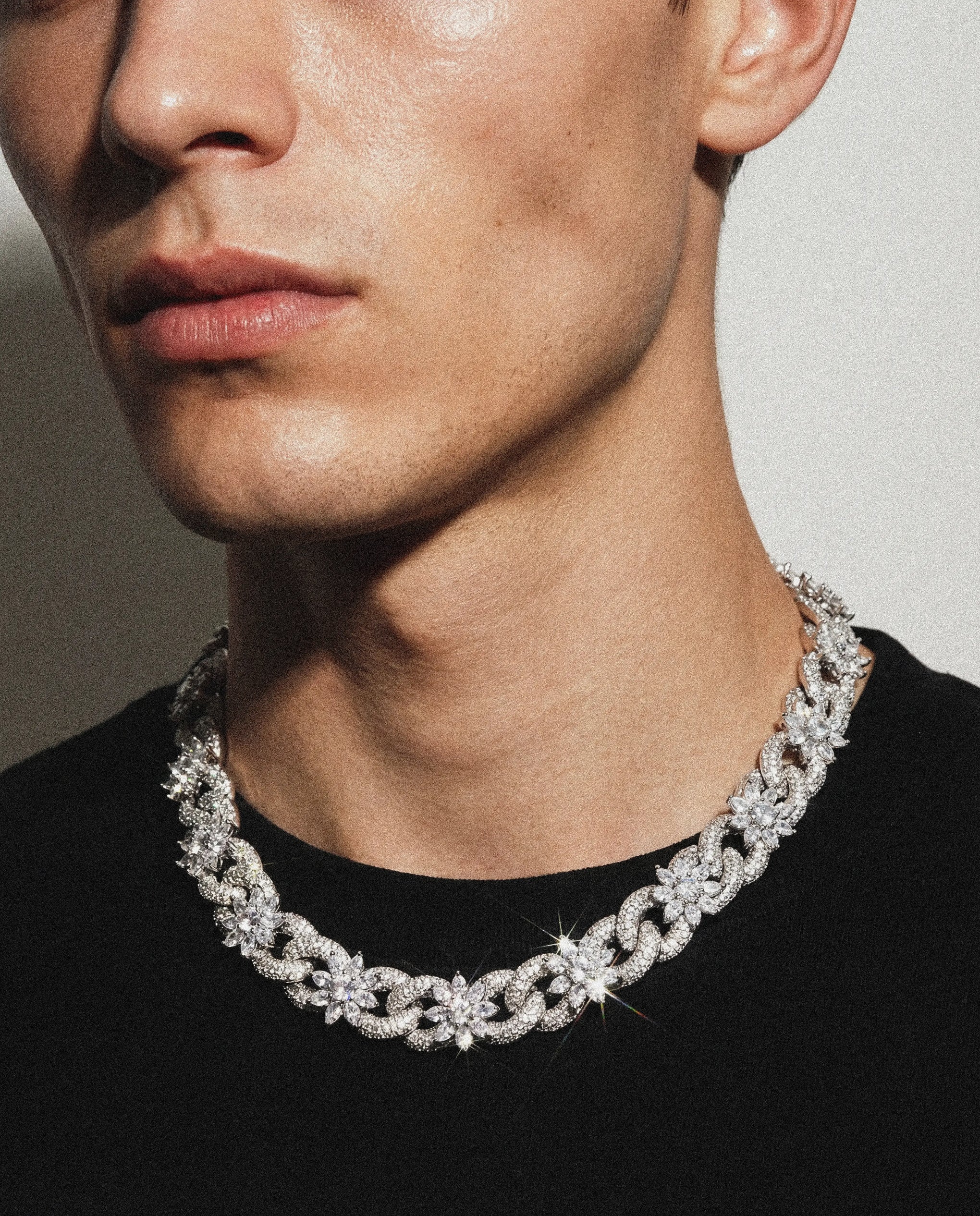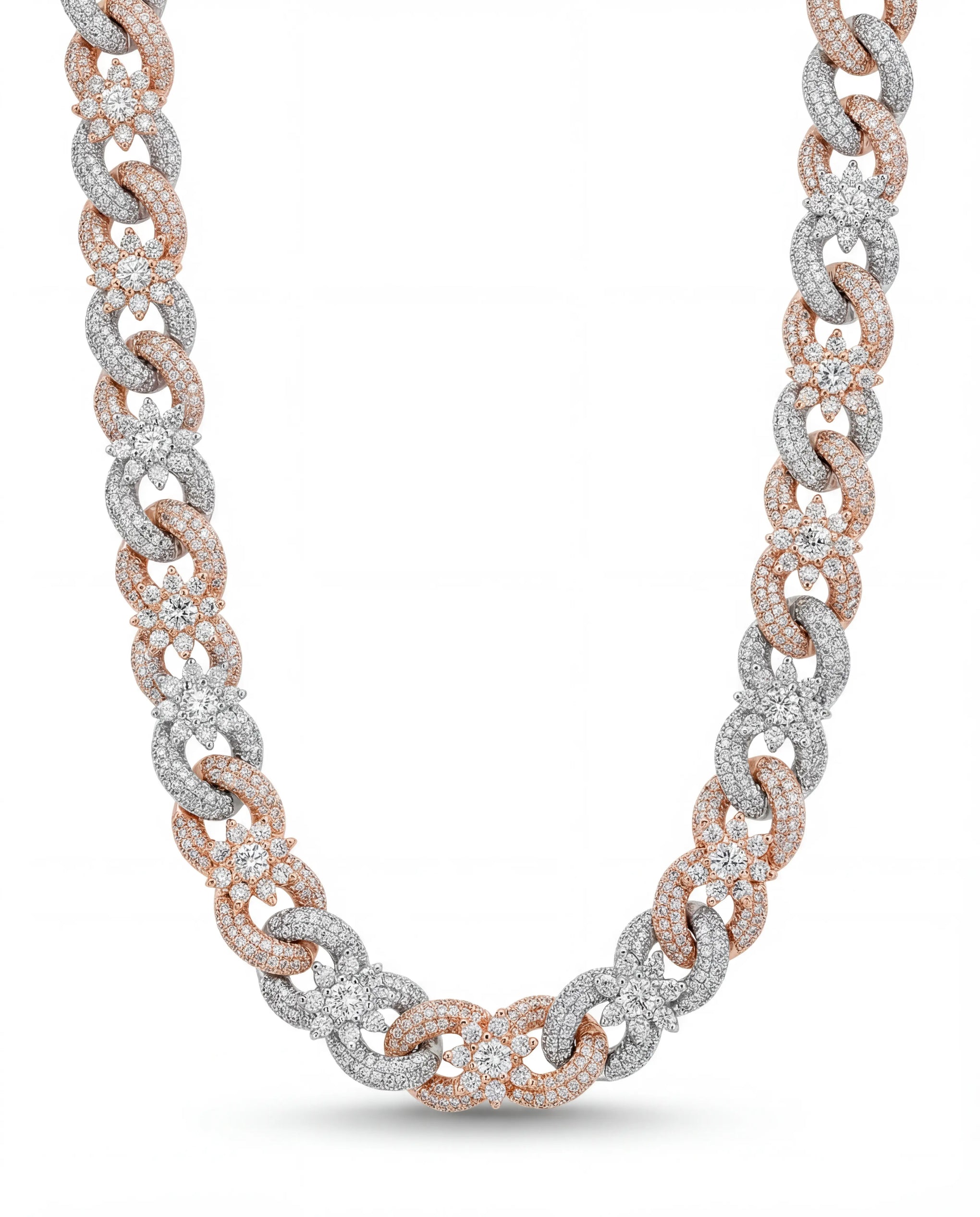 The twisted link design that stands out without shouting. Iced flowers break up the pattern - subtle flex, maximum impact.