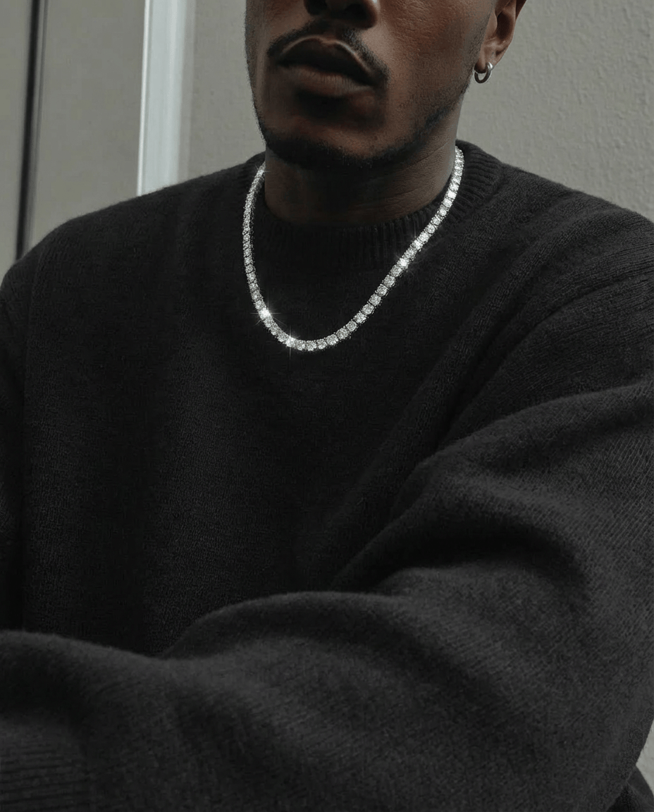 Rhodium plated for the white gold look. Stays clean, stays shining. This is how you level up without the payment plan.