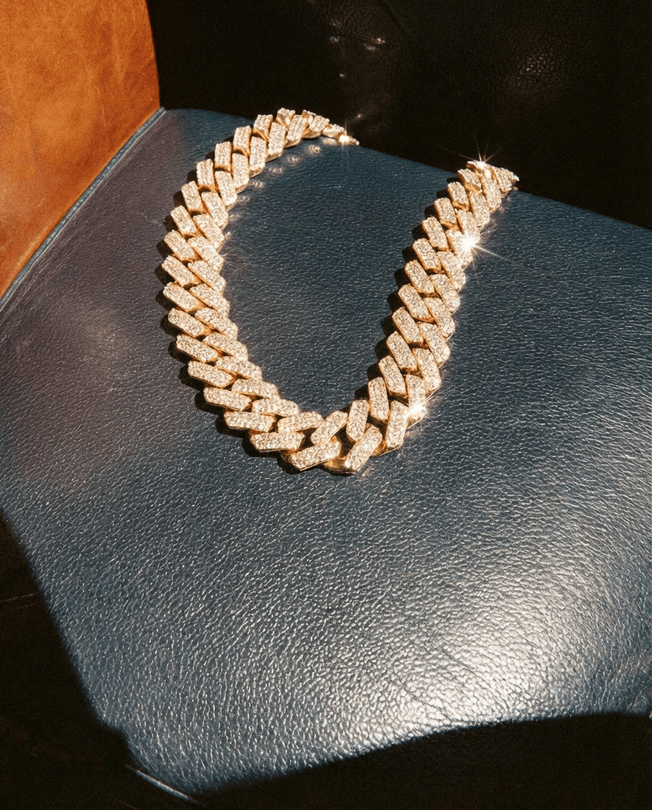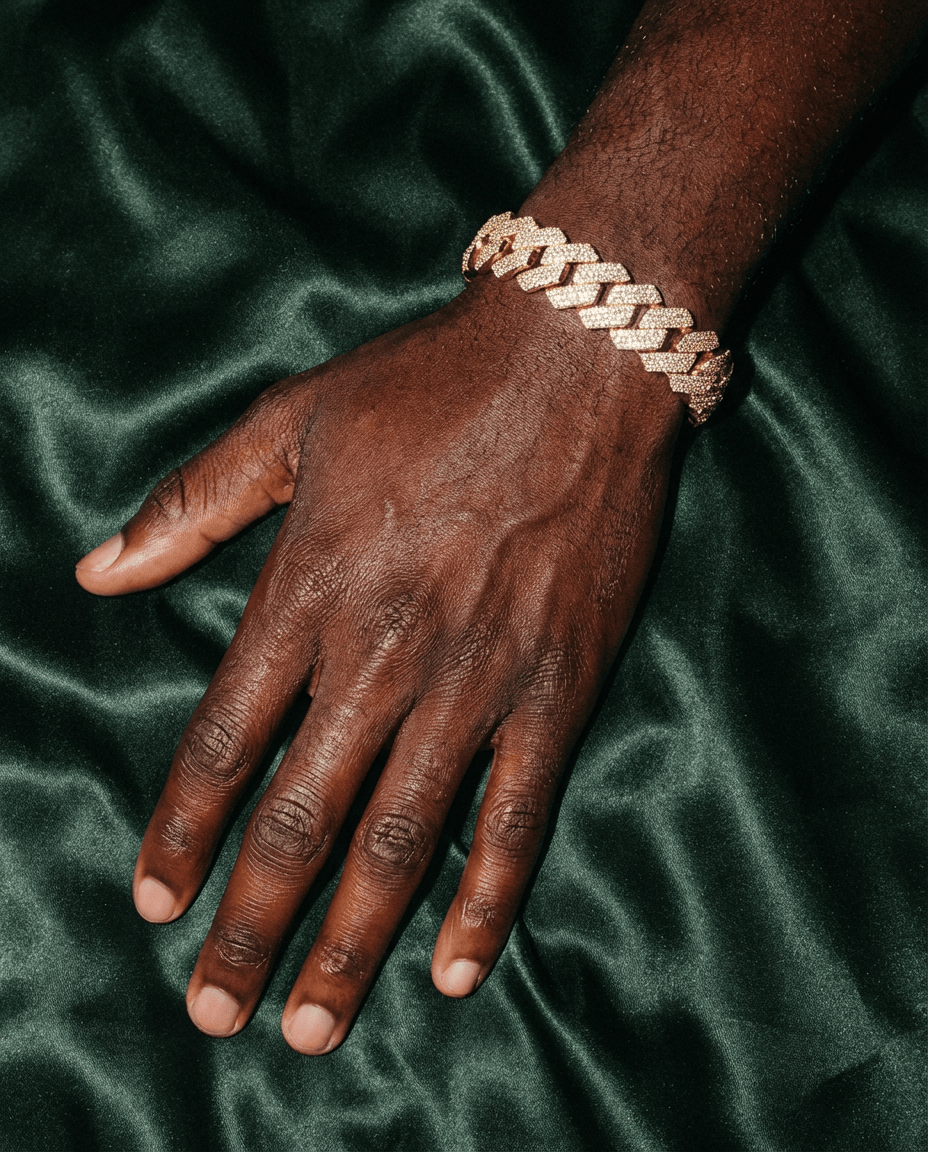 When you walk into the room wearing this, people notice. The Flora Fatale isn't just jewelry - it's 18MM of pure confidence. Every link fully iced out with premium stones that catch light from across the room. Heavy enough that you feel it, bold enough that everyone sees it. This is how you show you've stepped up your game.
